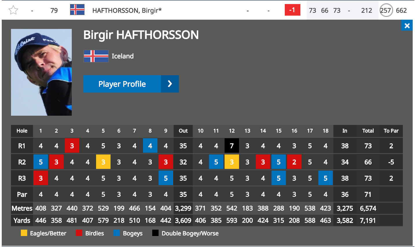 Alls hefur Birgir Leifur leikið á 70 mótum á Evrópumótaröðinni frá upphafi – og er hann langefstur í þeirri tölfræði hjá íslenskum atvinnukylfingum í karlaflokki.