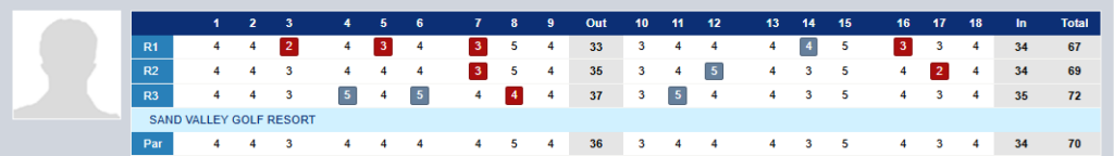 | T8 | 69 – 69 – 65 (-7) | Dagbjartur Sigurbrandsson | GR |
