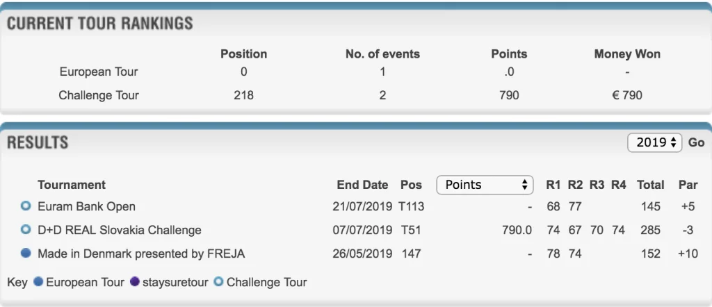 Í maí tók hann þátt á Made in Denmark mótinu á sjálfri Evrópumótaröðinni en komst ekki í gegnum niðurskurðinn.