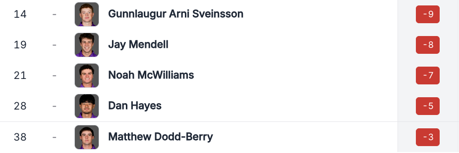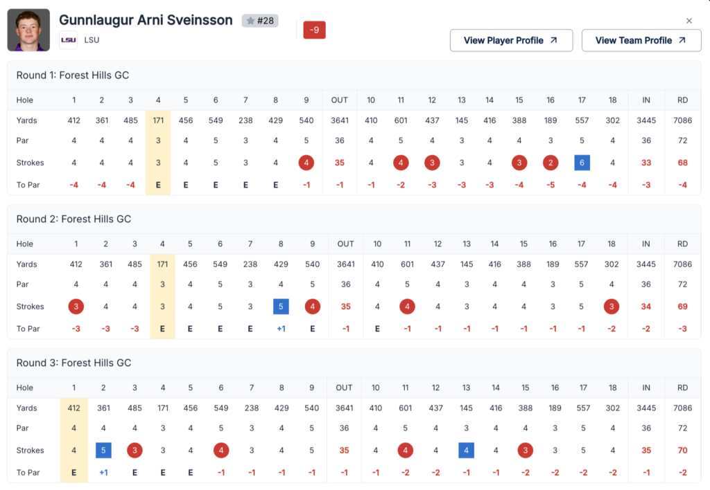 Lið Gunnlaugs í LSU hafnaði í fjórða sæti liðakeppninnar á 32 höggum undir pari. Okkar maður lék best allra í liðinu, og heldur meðalskori sínu undir 70 höggum fyrir tímabilið.
