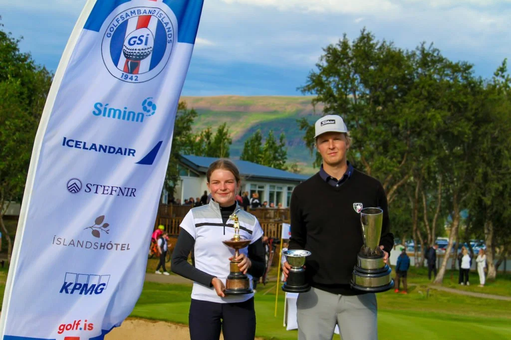Hulda Clara Gestsdóttir, GKG og Aron Snær Júlíusson, GKG fögnuðu Íslandsmeistaratitlunum í golfi í dag á Jaðarsvelli. Þetta er fyrsti Íslandsmeistaratitill þeirra og í fyrsta sinn sem GKG fagnar Íslandsmeistaratitli í kvennaflokki. Þetta er því sögulegur sigur fyrir GKG að báðir Íslandsmeistararnir eru úr Golfklúbbi Kópavogs og Garðabæjar.
