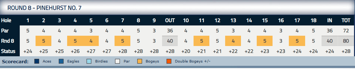 Ólafía Þórunn lék hringina átta á alls +28 yfir pari eða 604 höggum (76- 77-72-75-78-74-72-80).