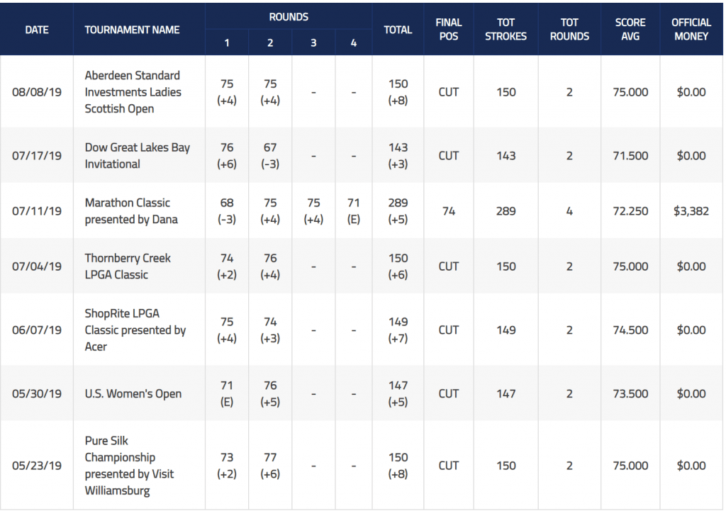 Mótið í Portland er því áttunda mótið á tímabilinu hjá Ólafíu á LPGA mótaröðinni 2019. Hún hefur náð að komast í gegnum niðurskurðinn á einu móti á þessu tímabili þar sem hún endaði í 74. sæti.